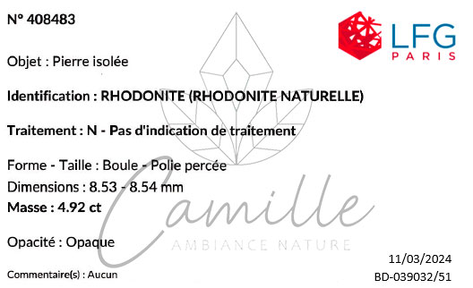 Rhodonite Brésil AAA 10mm